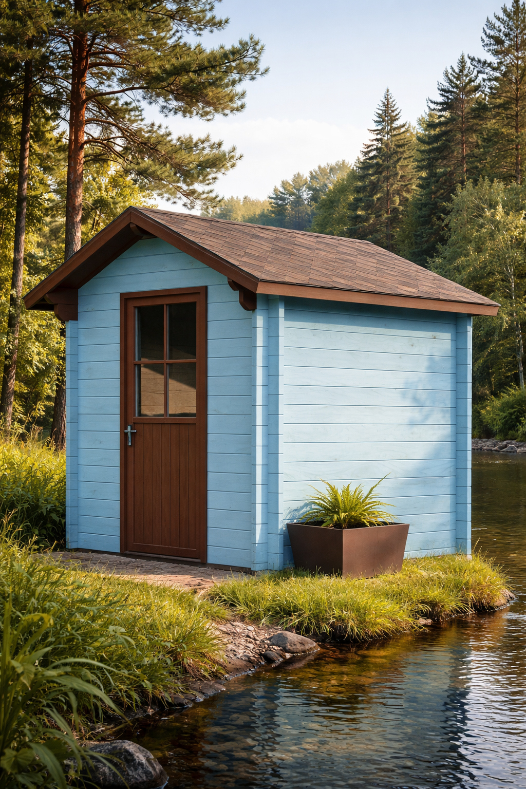 - Zubehör (Dacheindeckung, Lasuren, Lacke, Dachrinne usw.) gegen Aufpreis möglich